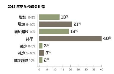 好动静是:在全球范围内,本年的预算数额起码不会有所缩减,最终很有可能持平——事实有近四成的美国企业受访者暗示其预算与上年比拟并没有改变,但只有7%的企业和9%的小型企业估计安然预算将在2013年中有所降落。