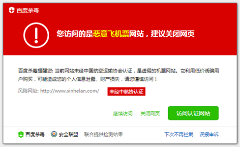 百度杀毒与中航协强强联手,全网首家精准辨认假充飞机票