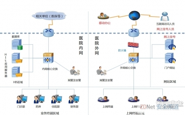 从整体来看,大年夜大都病院的信息收集具有典型企业网的特点,办公与出产分手,以营业为呵护重点,与互联网有信息交互等。
