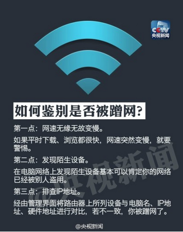 图2:央视微博上关于鉴别是否被蹭网和查看路由连接设备的技巧